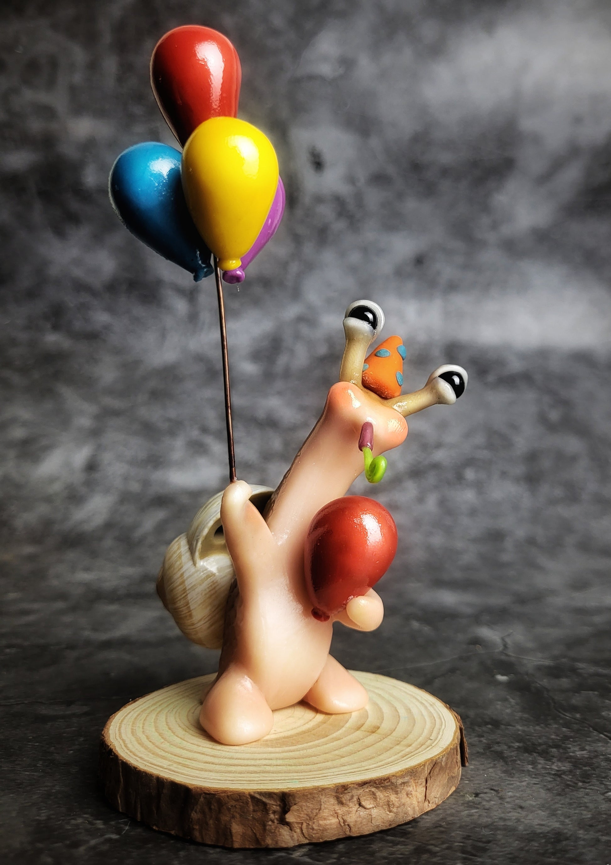 Each Sculpture features a genuine snail shell, carefully selected and cleaned to ensure a stunning and natural appearance. The body of the snail is skillfully sculpted from durable polymer clay, with intricate details and a charming design that highlights the beauty of the shell. The enchanting colors and patterns are lovingly sculpted and hand-painted, adding to the sculpture's overall mystical charm.