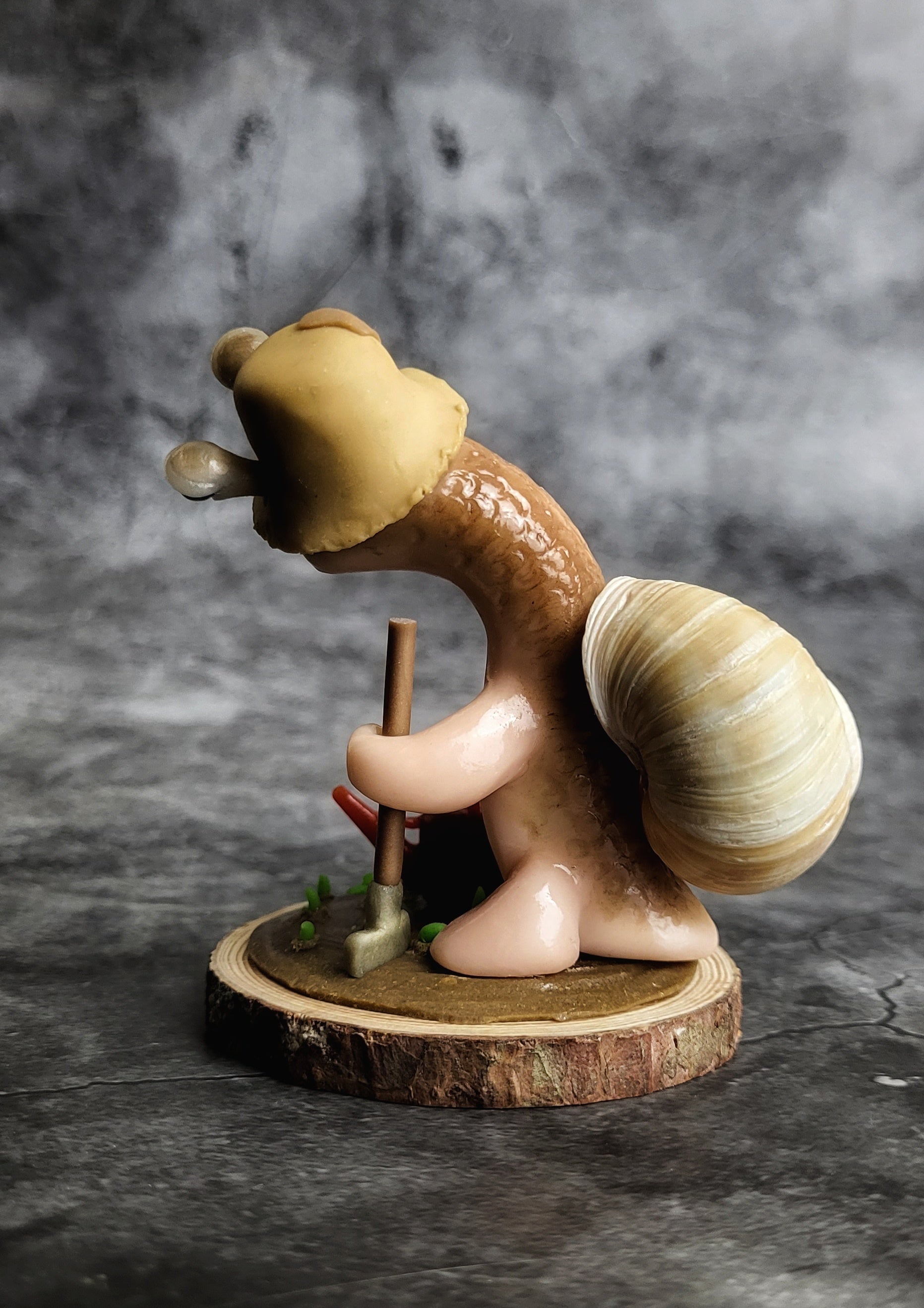 Each Sculpture features a genuine snail shell, carefully selected and cleaned to ensure a stunning and natural appearance. The body of the snail is skillfully sculpted from durable polymer clay, with intricate details and a charming design that highlights the beauty of the shell. The enchanting colors and patterns are lovingly sculpted and hand-painted, adding to the sculpture's overall mystical charm.