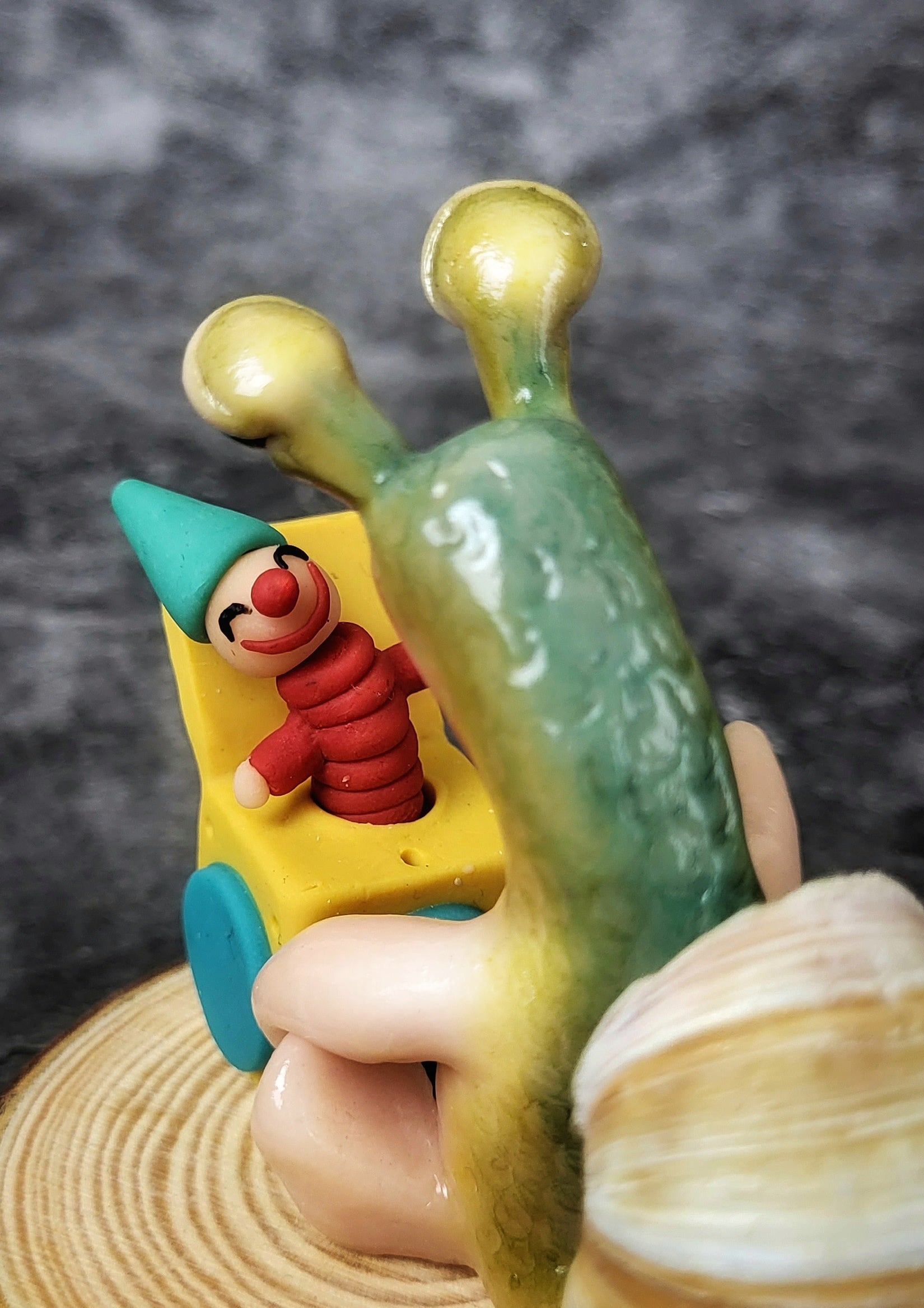 Each Sculpture features a genuine snail shell, carefully selected and cleaned to ensure a stunning and natural appearance. The body of the snail is skillfully sculpted from durable polymer clay, with intricate details and a charming design that highlights the beauty of the shell. The enchanting colors and patterns are lovingly sculpted and hand-painted, adding to the sculpture's overall mystical charm.