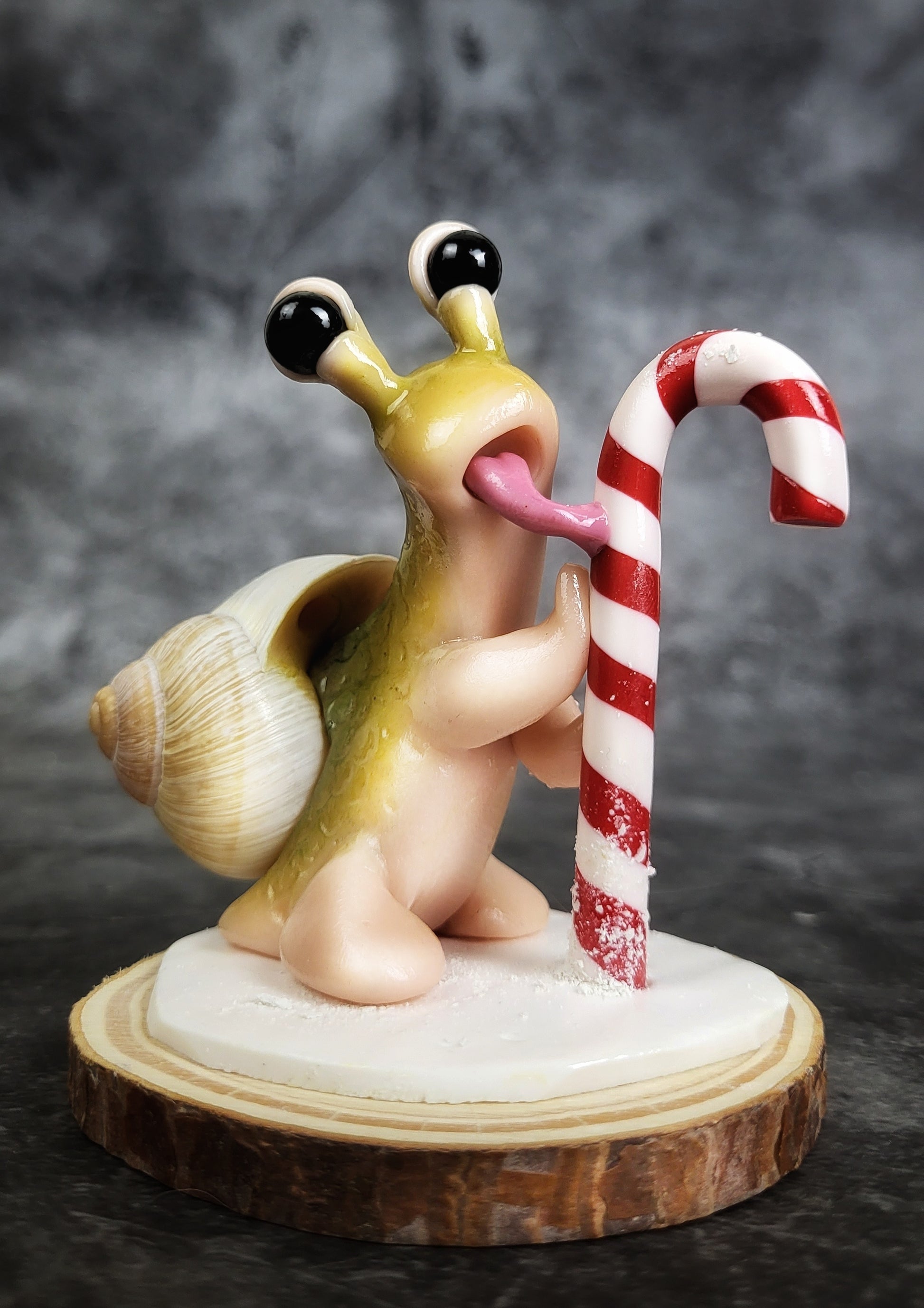 Fizz is a curious little TrailSnail on an adventure to the North Pole, driven by his sweet tooth and an insatiable love for all things sugary. The frosty air fills with the scent of peppermint as he stumbles upon the biggest candy cane he’s ever seen, glistening under the Arctic sky. Unable to resist, Fizz gives it a taste, only to find his tongue sticking fast to the icy treat! Now, in a hilariously sticky situation, he’s determined to find a way out, dreaming of more North Pole delights and sugary discoveries waiting just beyond this frosty hurdle.