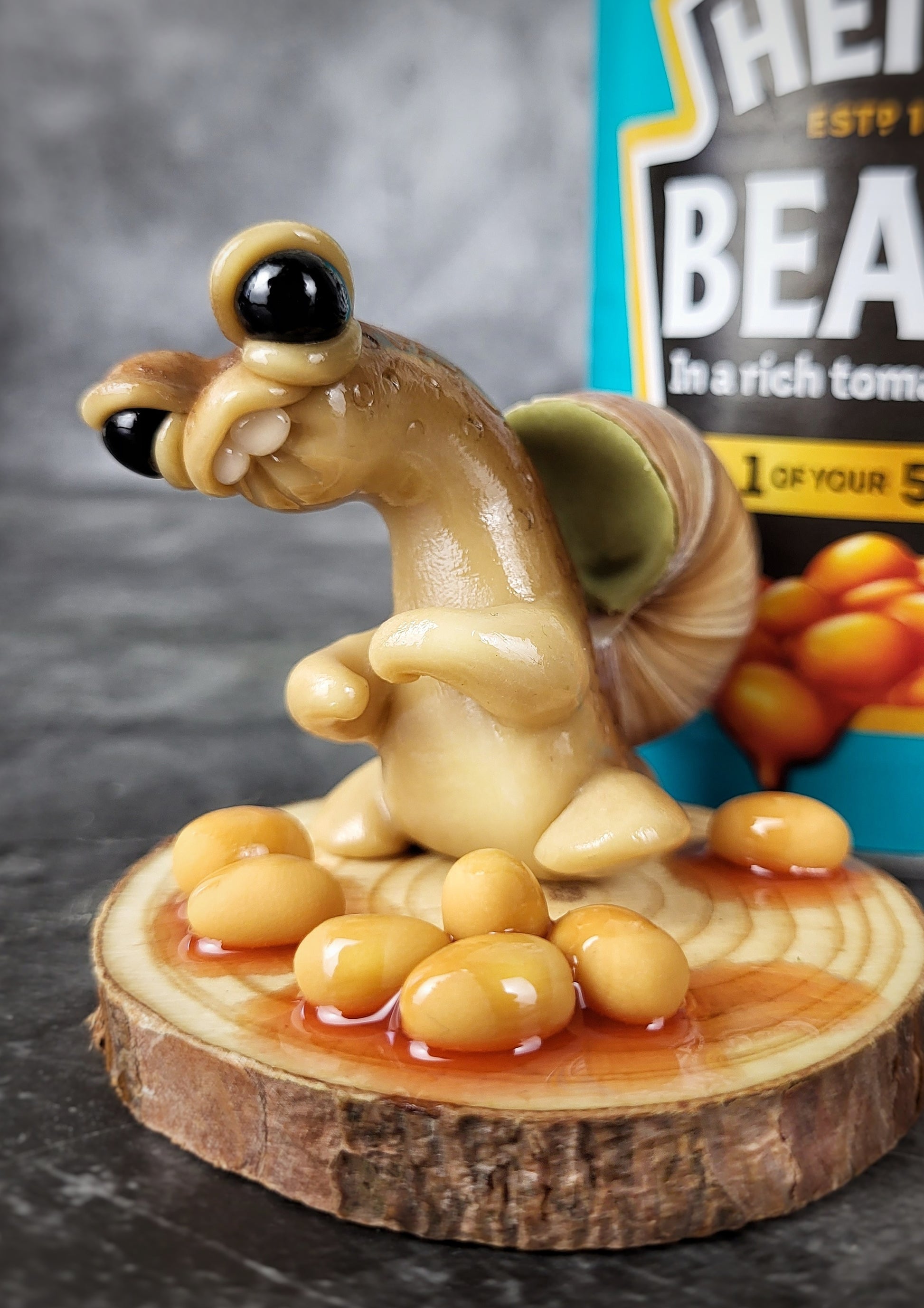 Zump is a wide-eyed little menace with a bottomless belly and an undying love for baked beans. He munches them morning, noon and night, often straight from the tin, leaving a trail of sticky orange sauce wherever he goes. His burrow? A no-go zone. The air inside wobbles. The side effects of his diet are... unmistakable. Most snailz have learned to keep their distance, especially after lunch. But Zump doesn’t care. He lives for the bean life, and if a few rumblings come with the territory, so be it. He calls it natural music. No one else does.