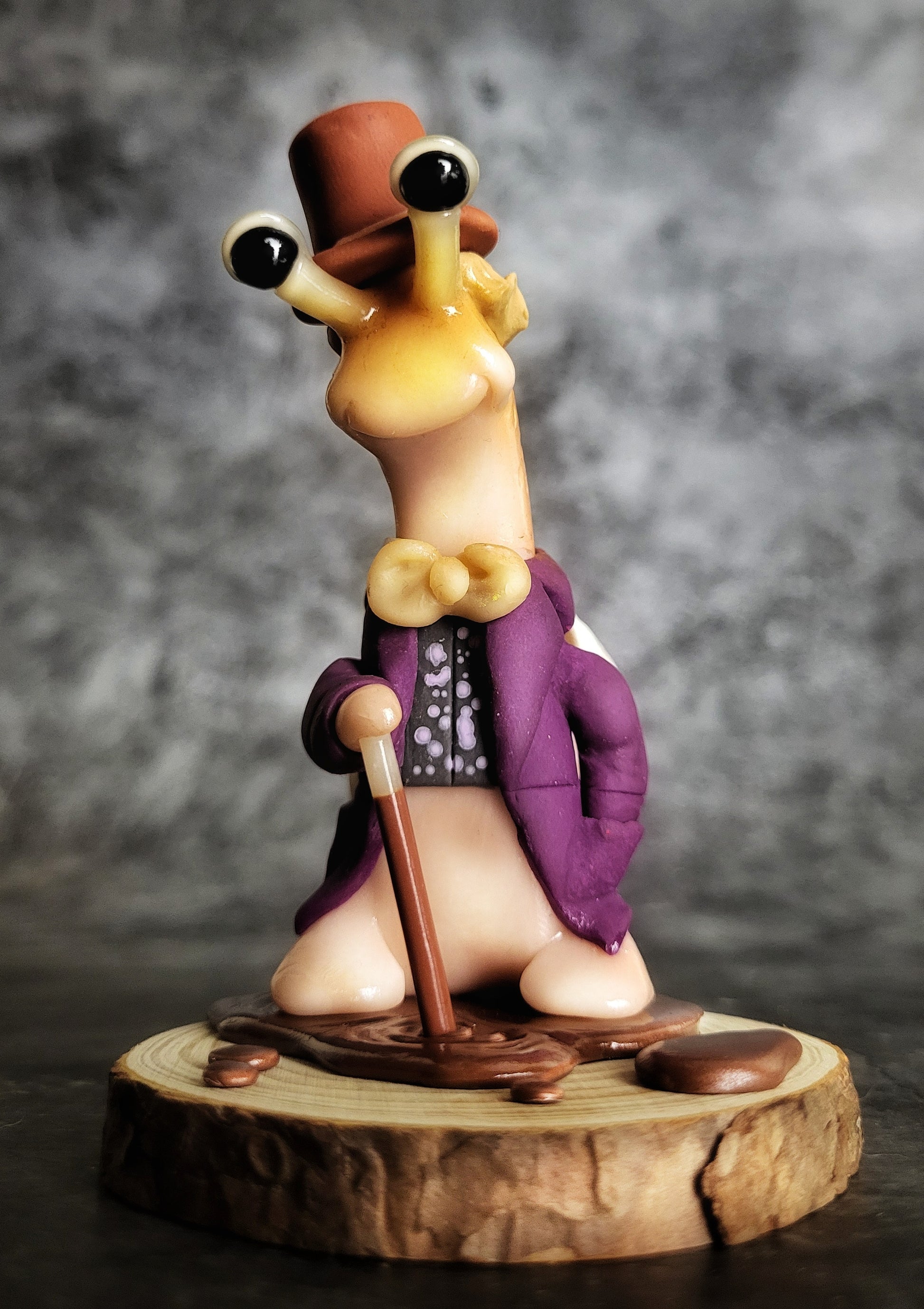 Villy Vonka is a renowned TrailSnailz chocolatier, known far and wide for his extraordinary burrow tucked away in the rolling hills of Germany. His shell, always dusted with the faint scent of cocoa, is as much a mystery as the magical sweets he creates. The snailz speak in hushed tones of the fantastical candies that flow from his hidden tunnels—pools of molten chocolate and caramel streams that swirl into delicious concoctions no snail could resist. Villy himself is as eccentric as his creations, with his towering top hat and mischievous grin, welcoming any snail brave enough to venture into his world of edible wonders. But only a lucky few ever get to taste the rarest of his delights, for Villy always has a trick or two up his sleeve, making his treats as elusive as they are irresistible.