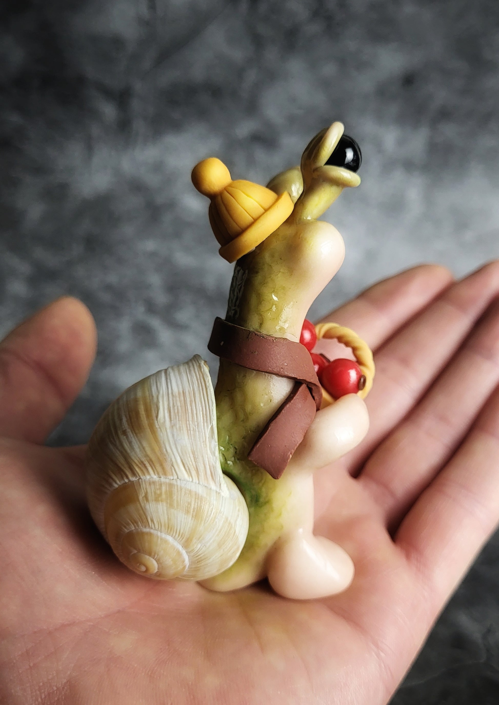 Each Sculpture features a genuine snail shell, carefully selected and cleaned to ensure a stunning and natural appearance. The body of the snail is skillfully sculpted from durable polymer clay, with intricate details and a charming design that highlights the beauty of the shell. The enchanting colors and patterns are lovingly sculpted and hand-painted, adding to the sculpture's overall mystical charm.