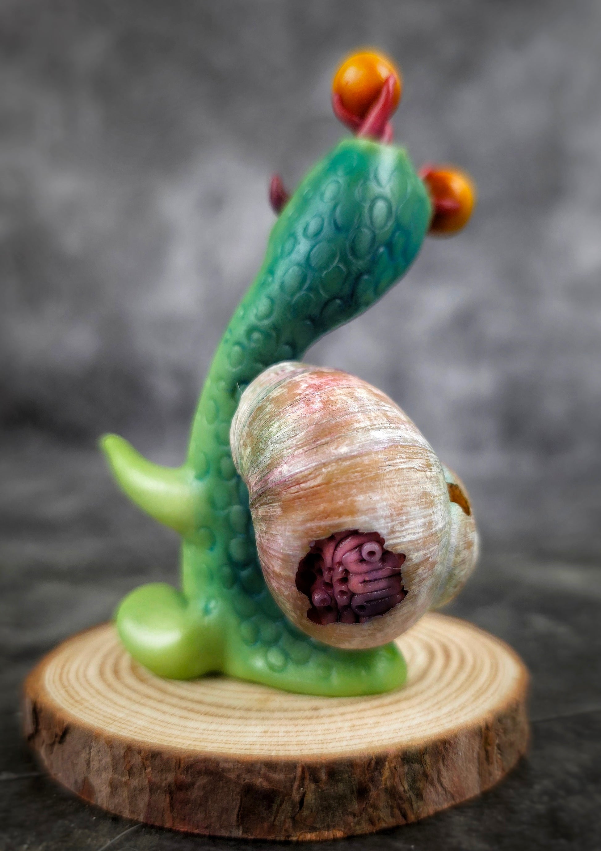 Each Sculpture features a genuine snail shell, carefully selected and cleaned to ensure a stunning and natural appearance. The body of the snail is skillfully sculpted from durable polymer clay, with intricate details and a charming design that highlights the beauty of the shell. The enchanting colors and patterns are lovingly sculpted and hand-painted, adding to the sculpture's overall mystical charm.