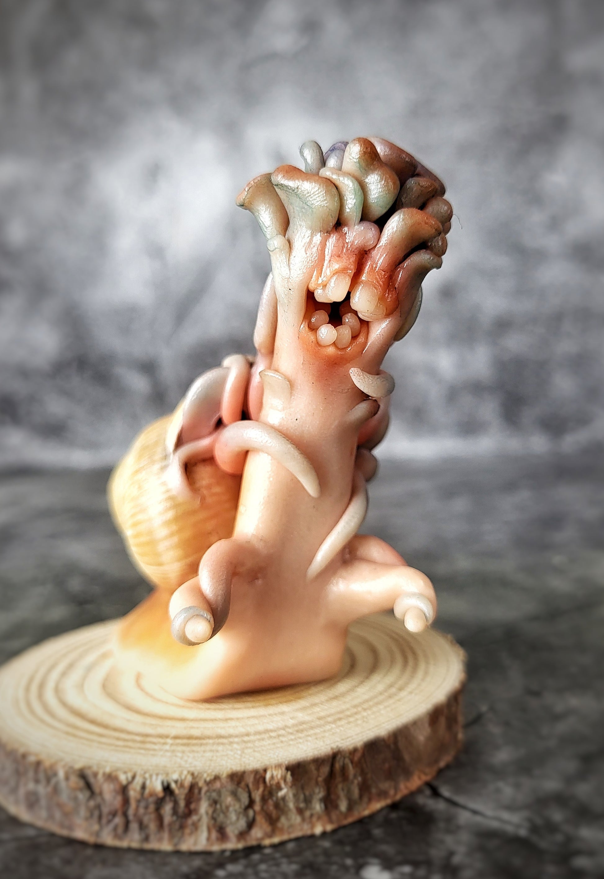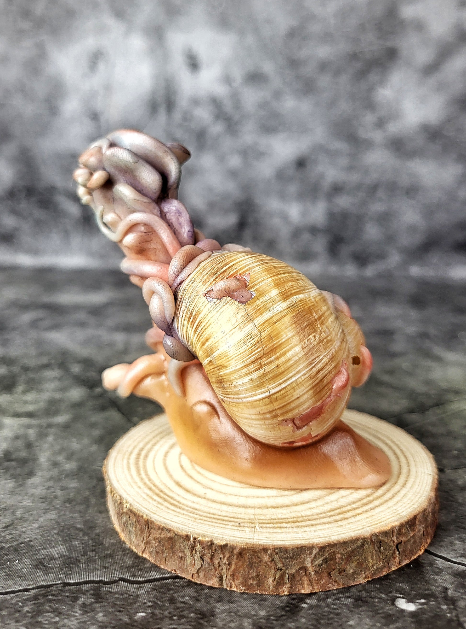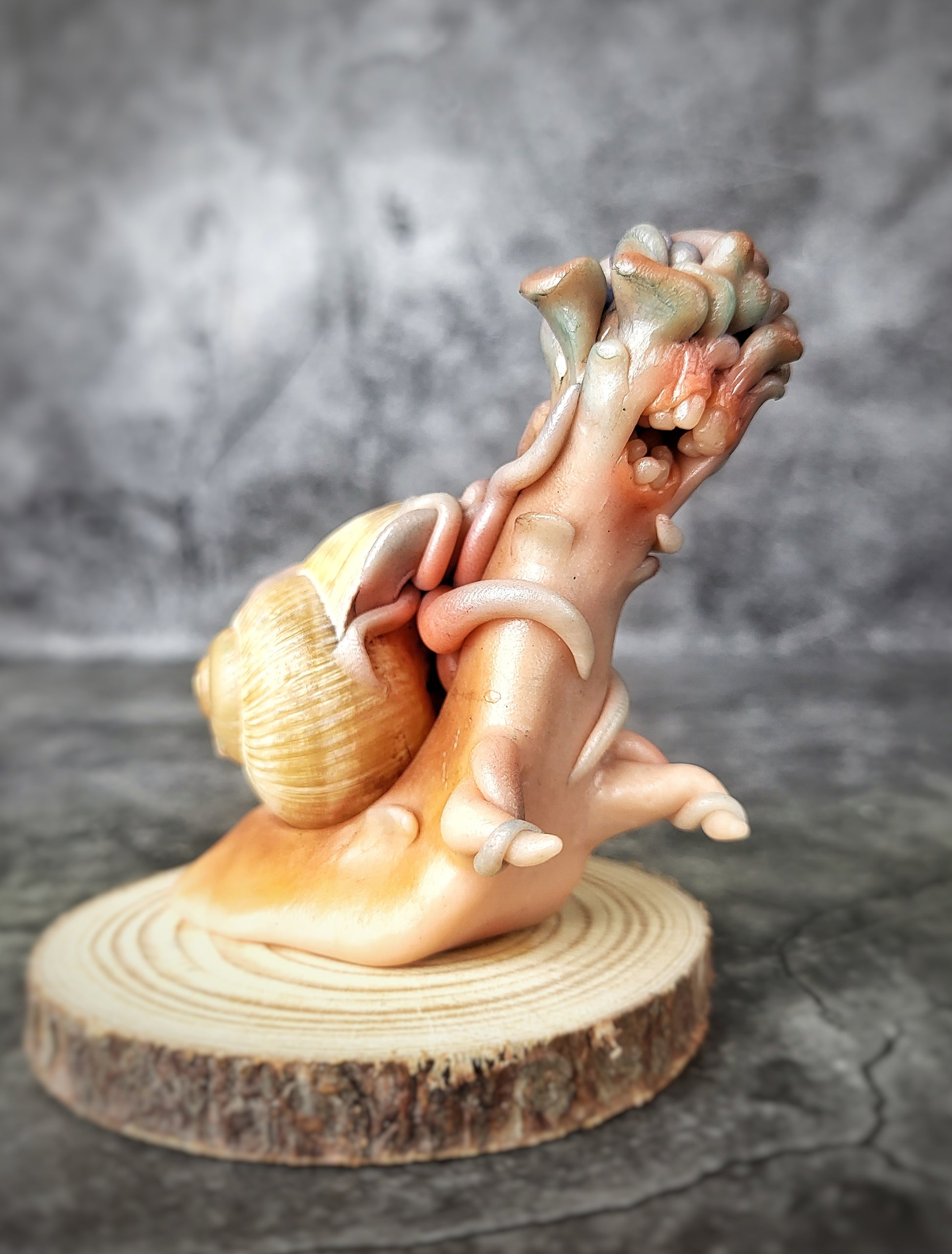 Each Sculpture features a genuine snail shell, carefully selected and cleaned to ensure a stunning and natural appearance. The body of the snail is skillfully sculpted from durable polymer clay, with intricate details and a charming design that highlights the beauty of the shell. The enchanting colors and patterns are lovingly sculpted and hand-painted, adding to the sculpture's overall mystical charm.