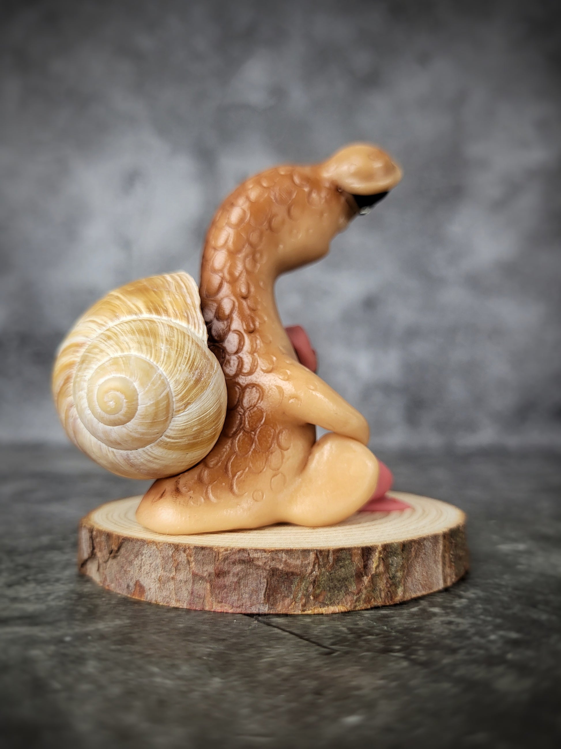 Each Sculpture features a genuine snail shell, carefully selected and cleaned to ensure a stunning and natural appearance. The body of the snail is skillfully sculpted from durable polymer clay, with intricate details and a charming design that highlights the beauty of the shell. The enchanting colors and patterns are lovingly sculpted and hand-painted, adding to the sculpture's overall mystical charm.