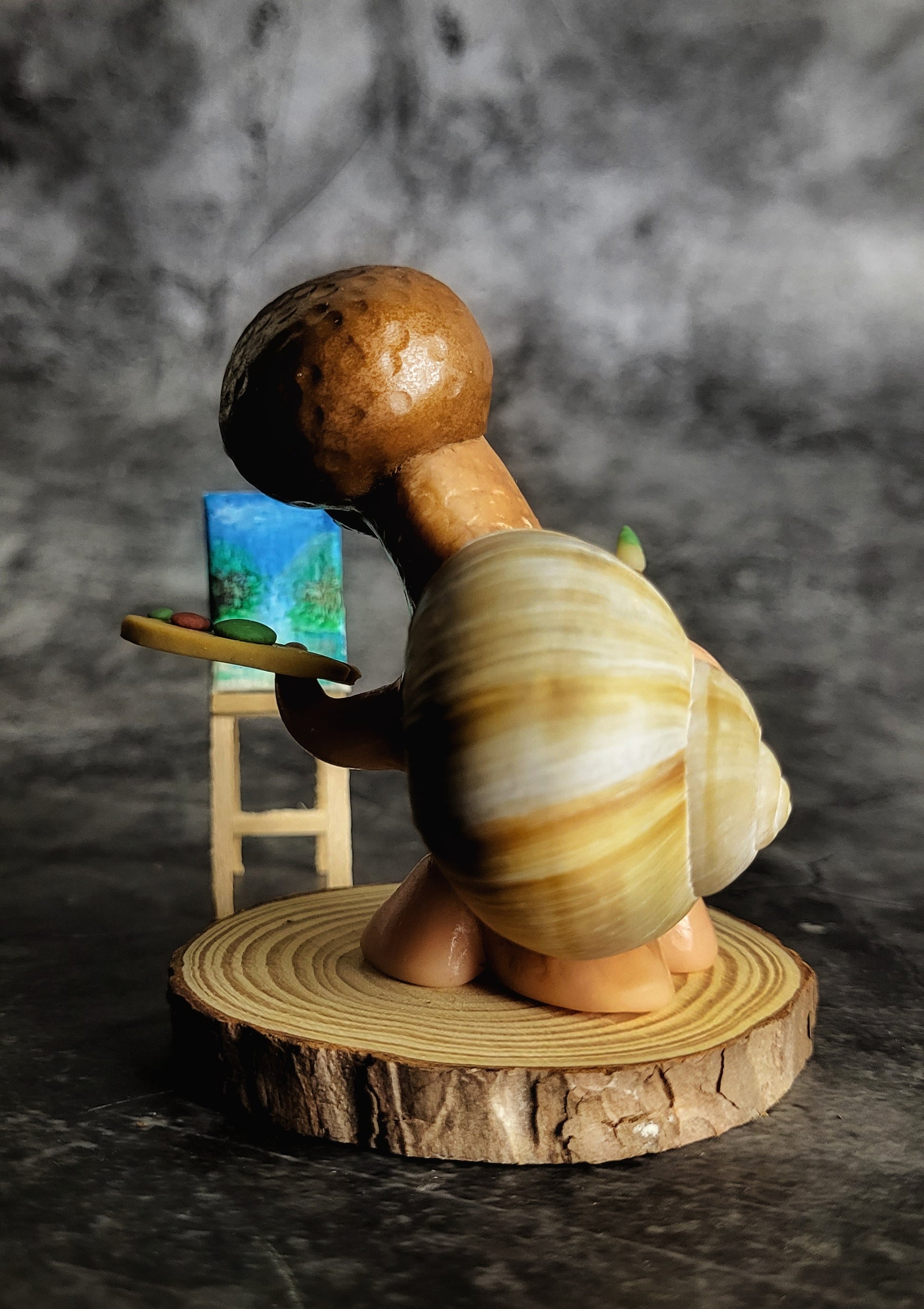 Each Sculpture features a genuine snail shell, carefully selected and cleaned to ensure a stunning and natural appearance. The body of the snail is skillfully sculpted from durable polymer clay, with intricate details and a charming design that highlights the beauty of the shell. The enchanting colors and patterns are lovingly sculpted and hand-painted, adding to the sculpture's overall mystical charm.