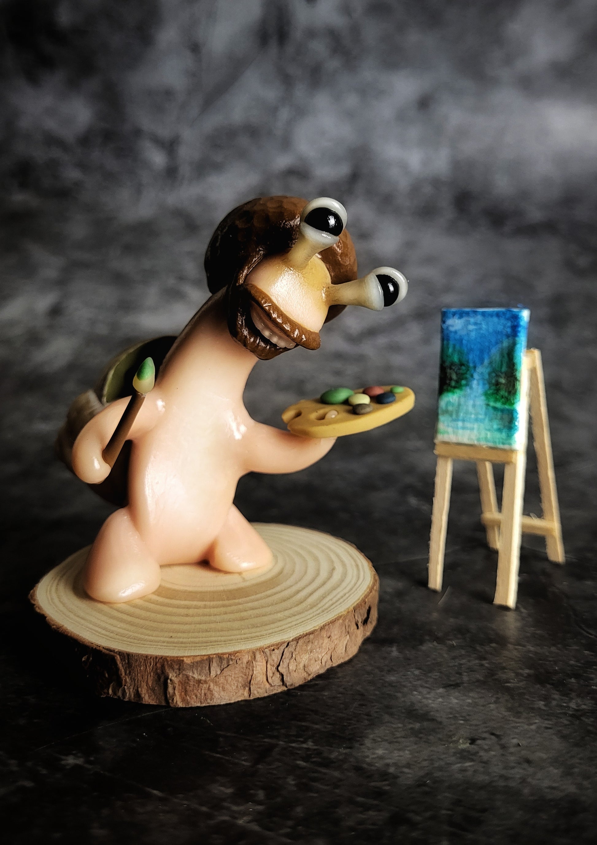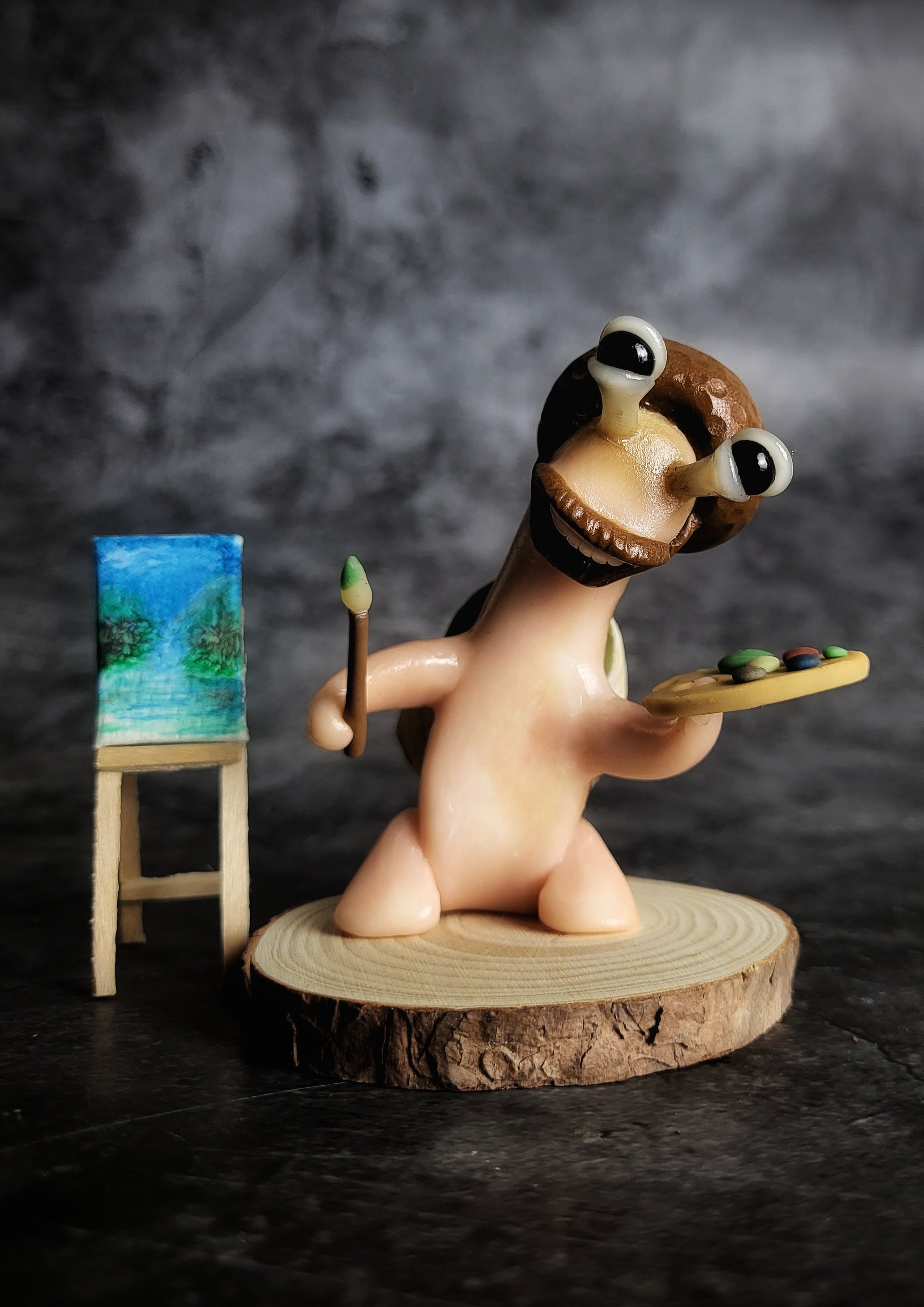 Bubruss is the calm, gentle soul of the TrailSnailz community, always encouraging other snailz to embrace their creativity. With his soft-spoken demeanor and a paintbrush always in hand, he brings color to the tunnels, transforming blank walls into serene landscapes that capture the beauty of the world above. His favorite thing to paint is the skies and forests, blending blues and greens in a way that makes every snail stop and admire. Bubruss believes there’s beauty in every part of the TrailSnailz life, and he’s always ready to remind the others that there are no mistakes, only happy little accidents. Wherever Bubruss goes, peace and creativity follow, and his work is known to brighten even the darkest of days.